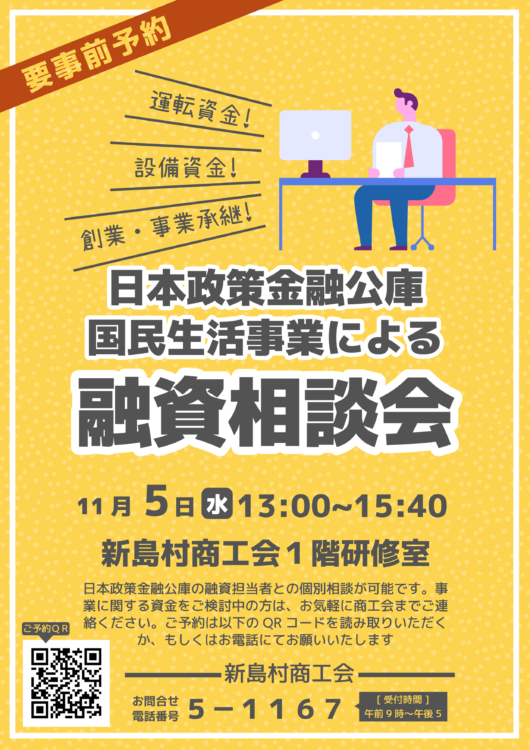 創業をお考えの方や事業拡大を検討されている方はもちろん、融資に関してご相談を希望される方は、この機会にぜひご活用ください。